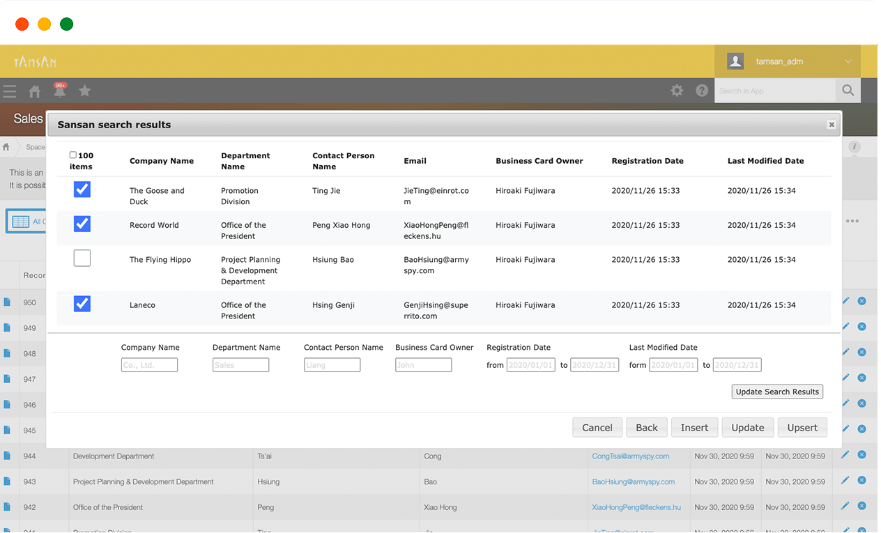 Updating of data brought over from Sansan and bulk new registration of data that has not been brought over