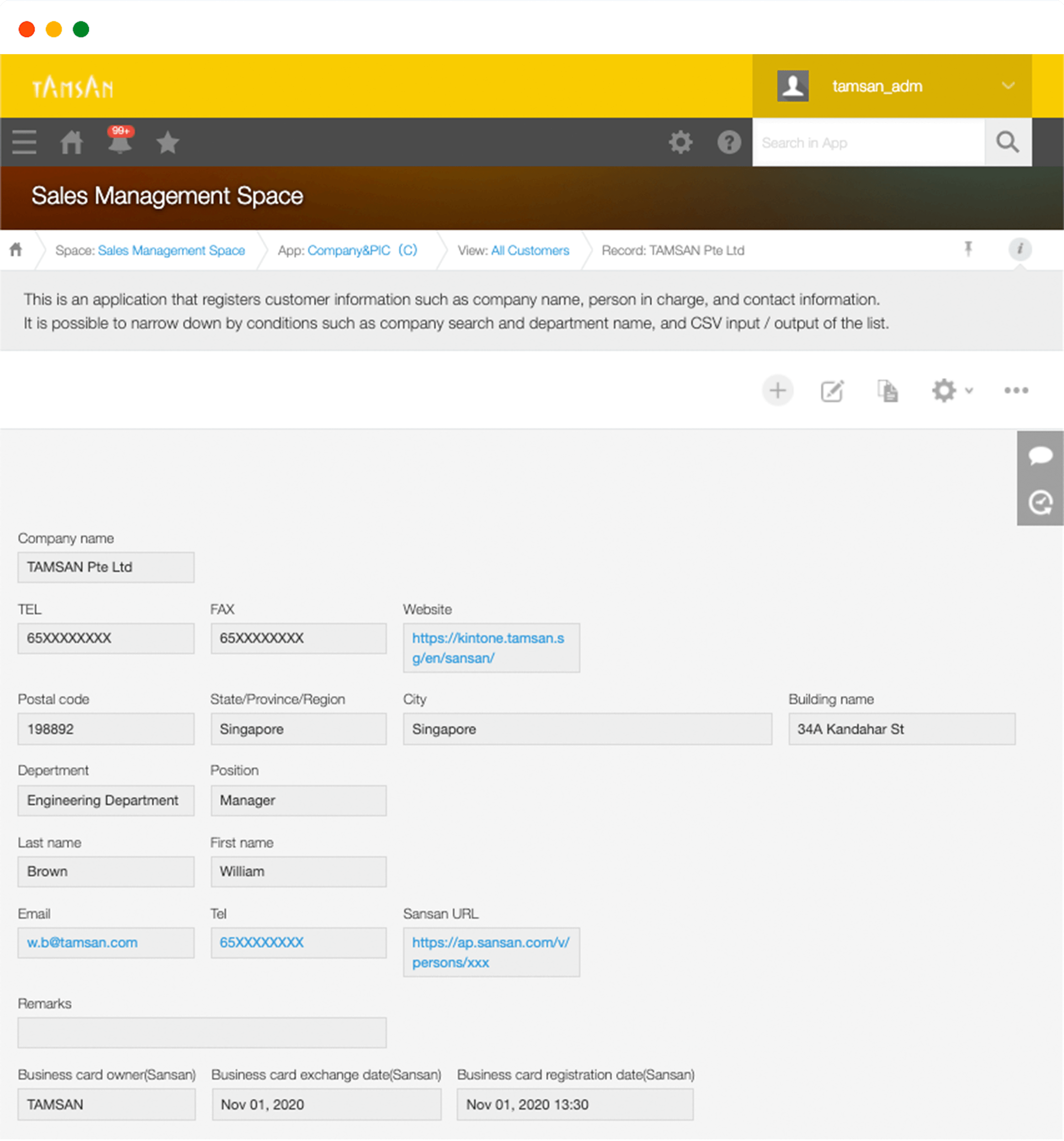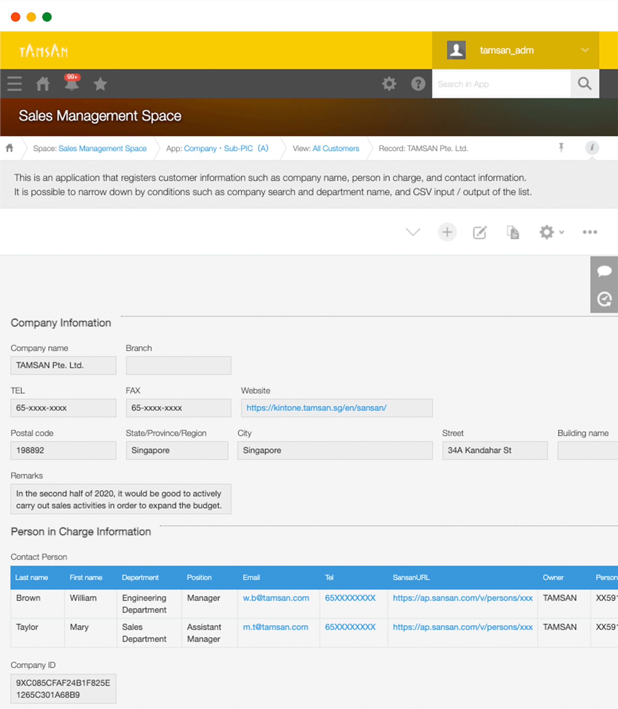 - Company App (one record): K.K. TAMSAN