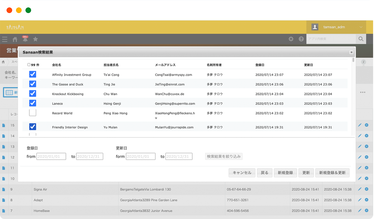 Sansanから取り込んだことのあるデータは更新、未取り込みのデータは一括新規登録