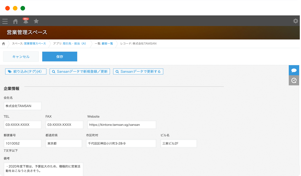 Sansanから取り込んだことのあるデータを、kintoneレコード詳細画面から、ボタン1つでSansanのデータで更新