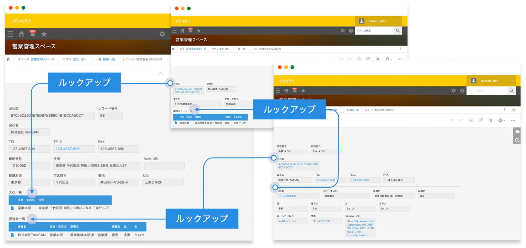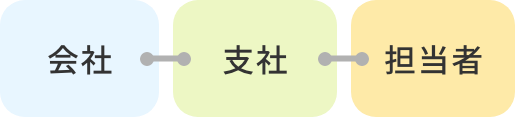 例:株式会社TAMSANで働く、所属支社の異なる2名の担当者を管理する場合