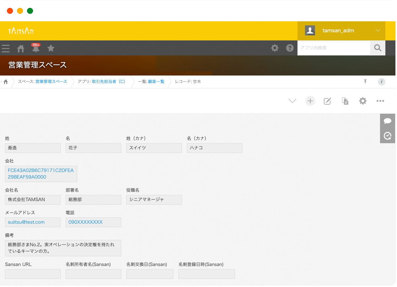 - 会社アプリ(1レコード):株式会社TAMSAN