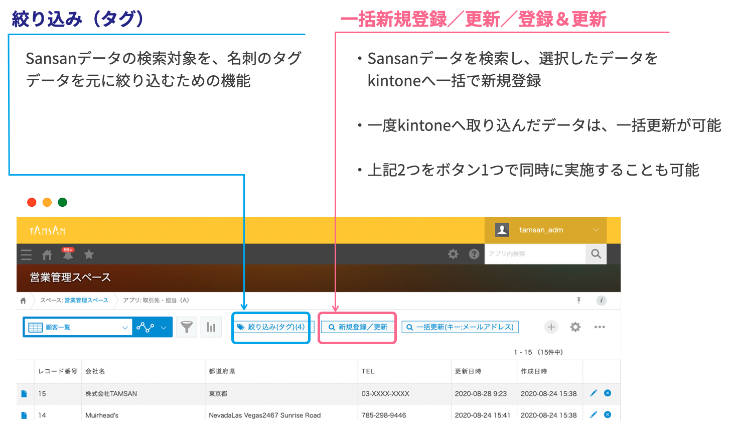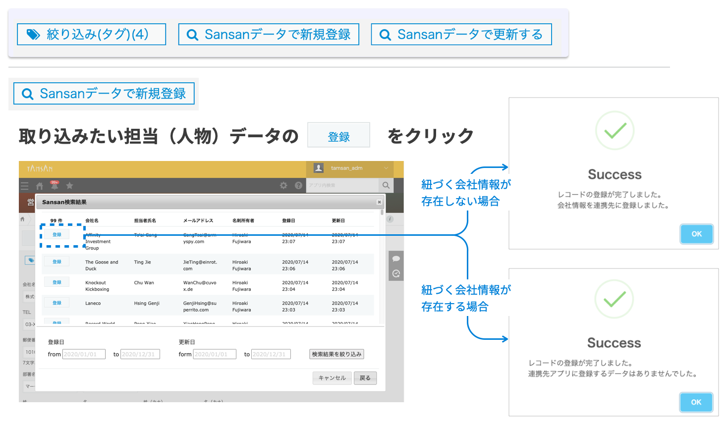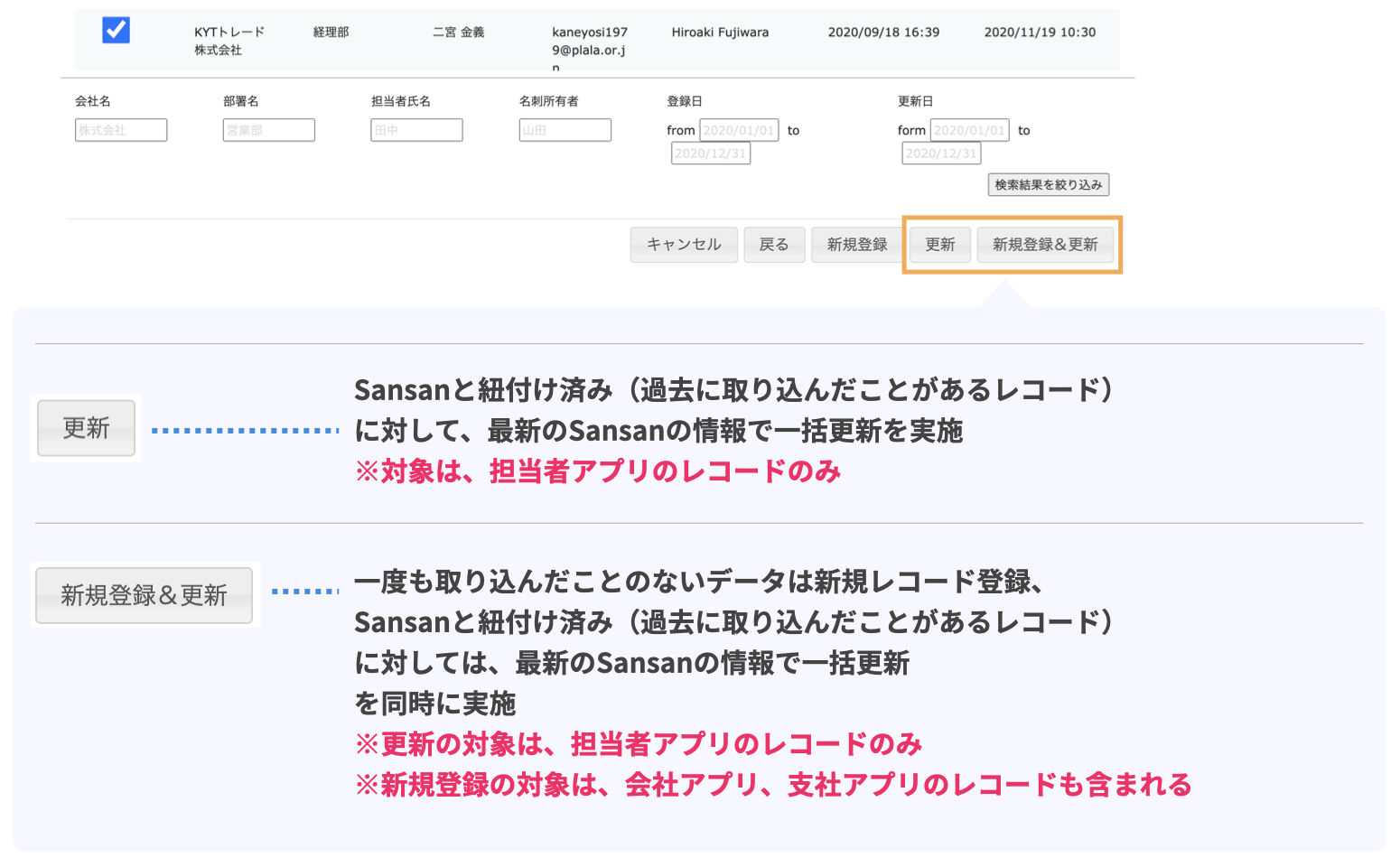 1. Sansanのデータを、kintoneへ一括新規登録/一括更新/一括登録&更新