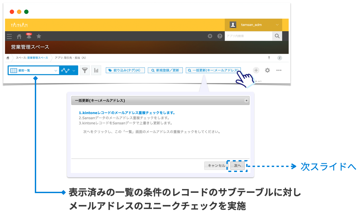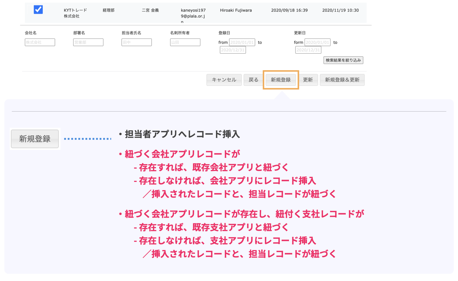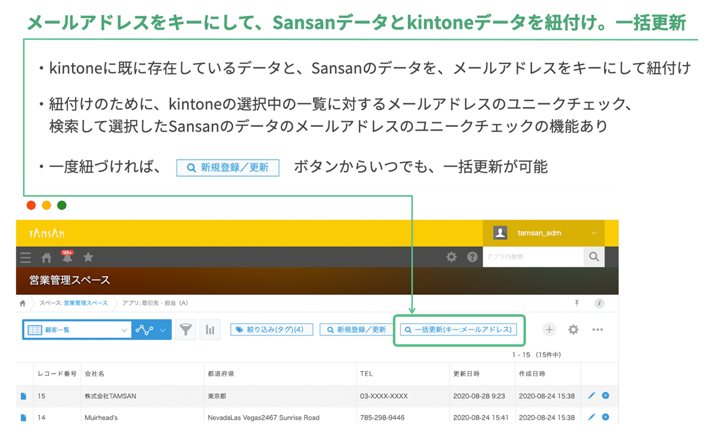 3. メールアドレスをキーにして、kintoneのデータを、Sansanのデータと一括紐付け