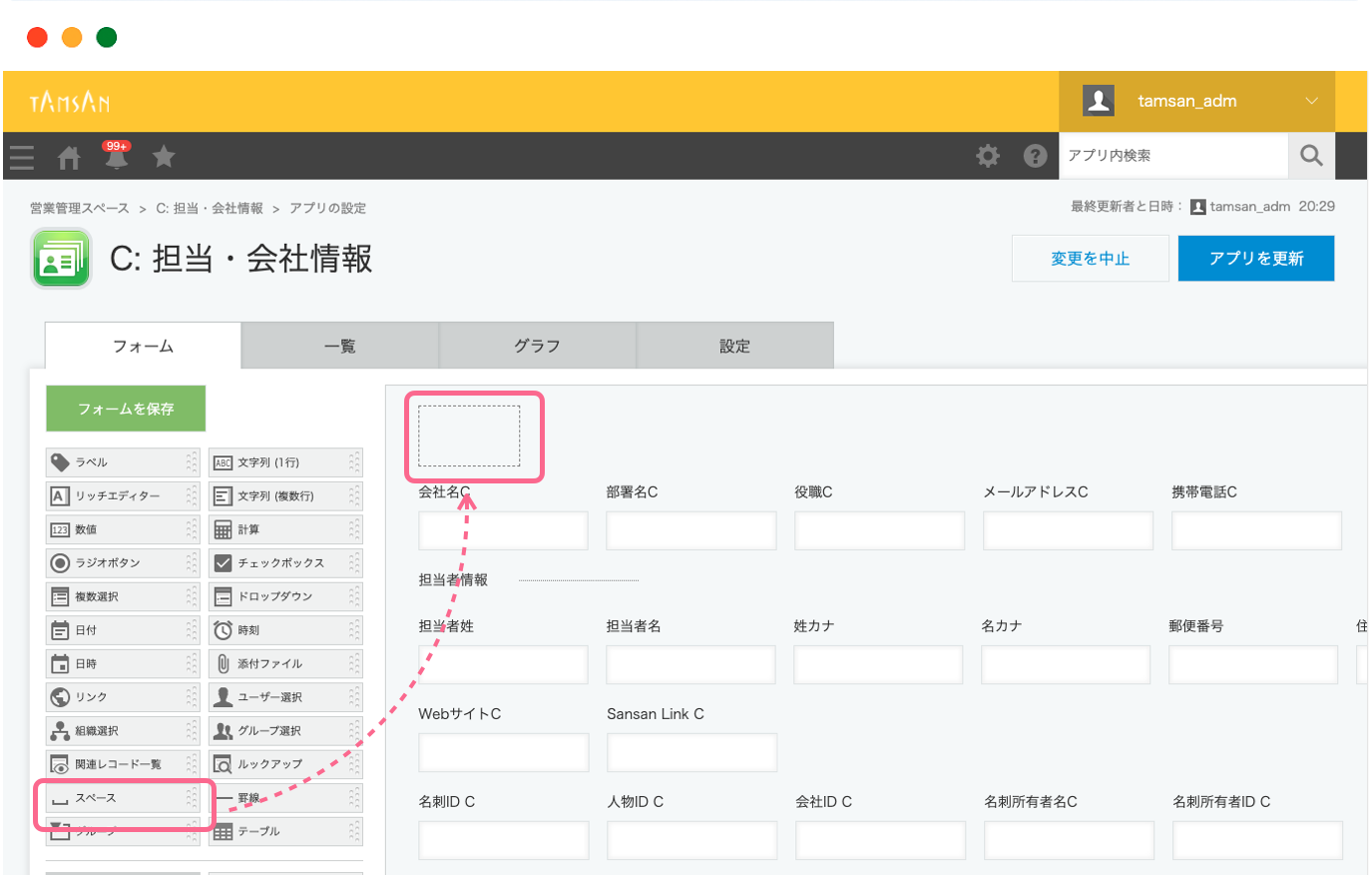 担当者アプリ:kintoneフィールドと、Sansanデータとのマッピング