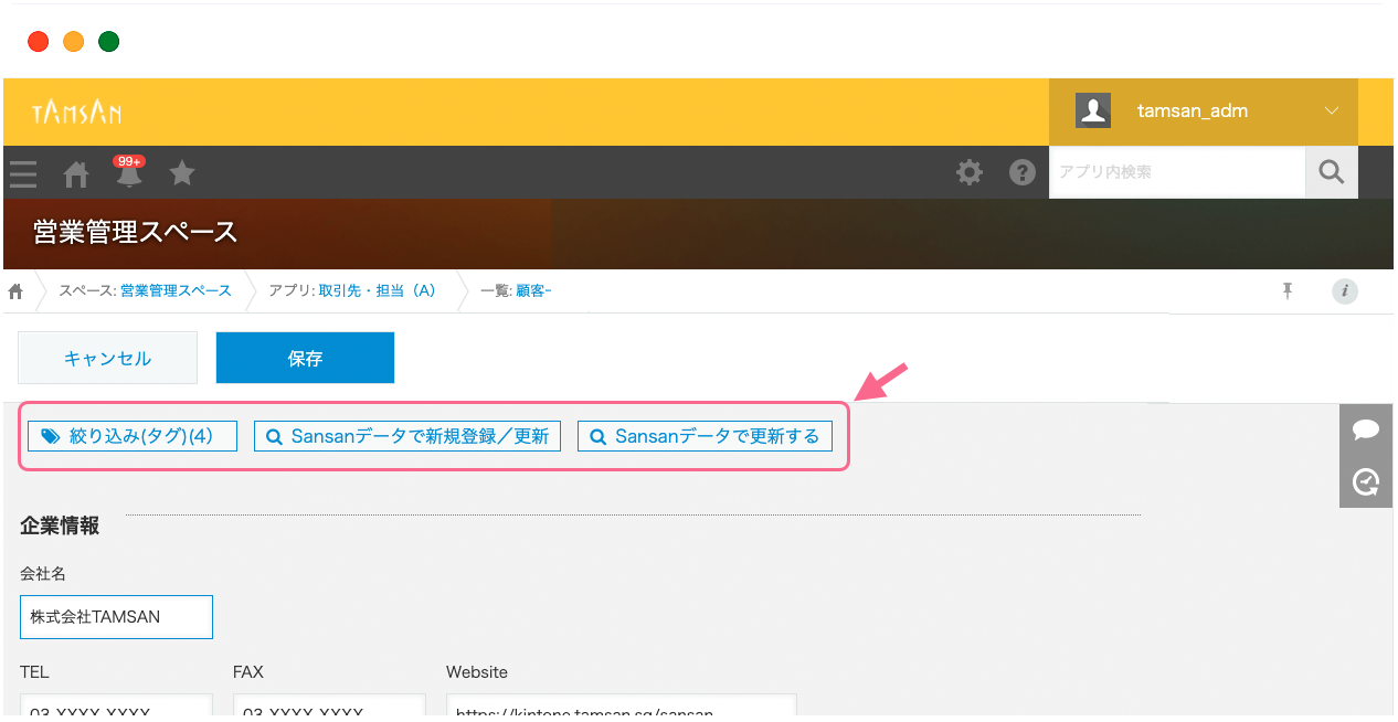 kintoneアプリの会社情報と、Sansanの会社情報を紐付ける上で、キーとなる情報。