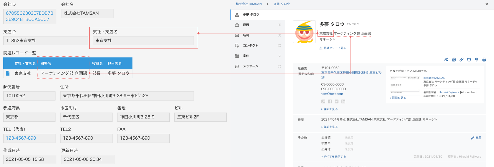 ※プラグイン独自の支社IDをもとにリレーションを張るため、既にルックアップが存在している場合でも、
