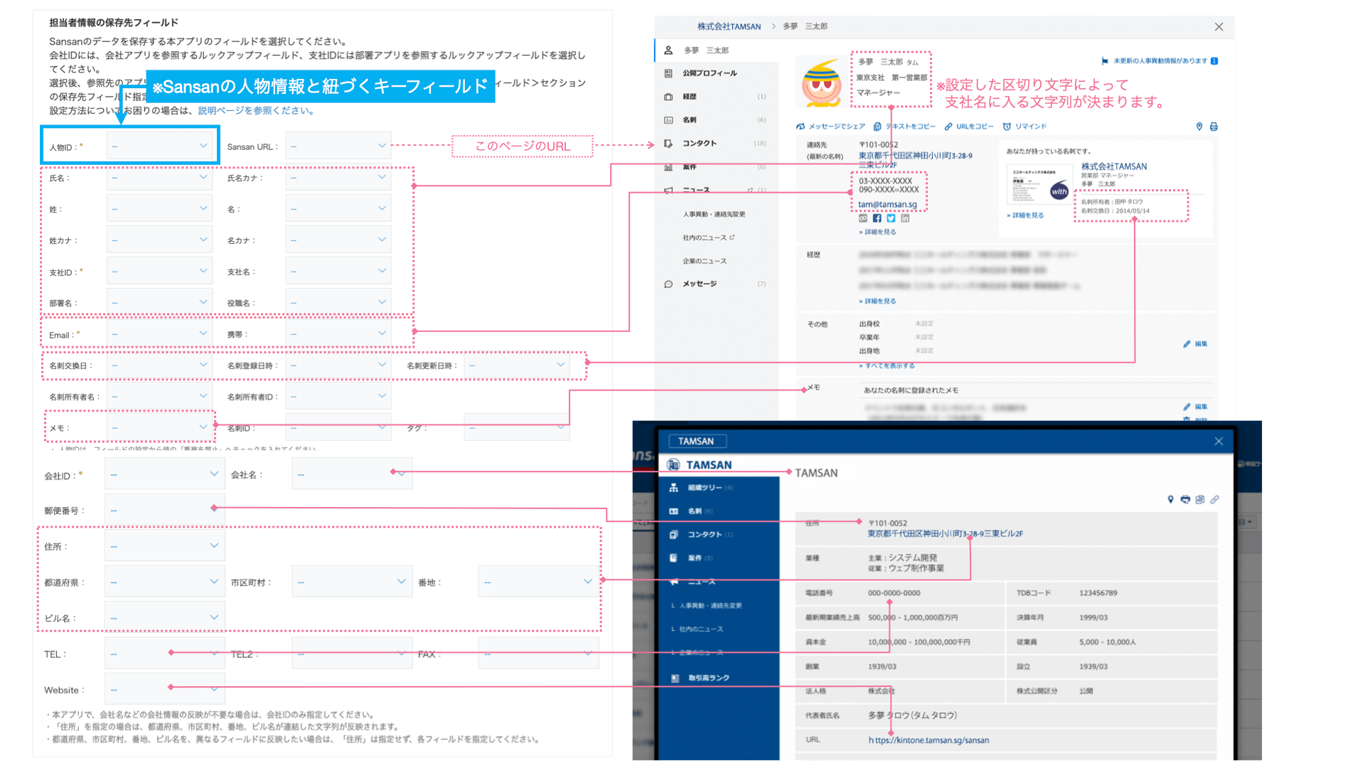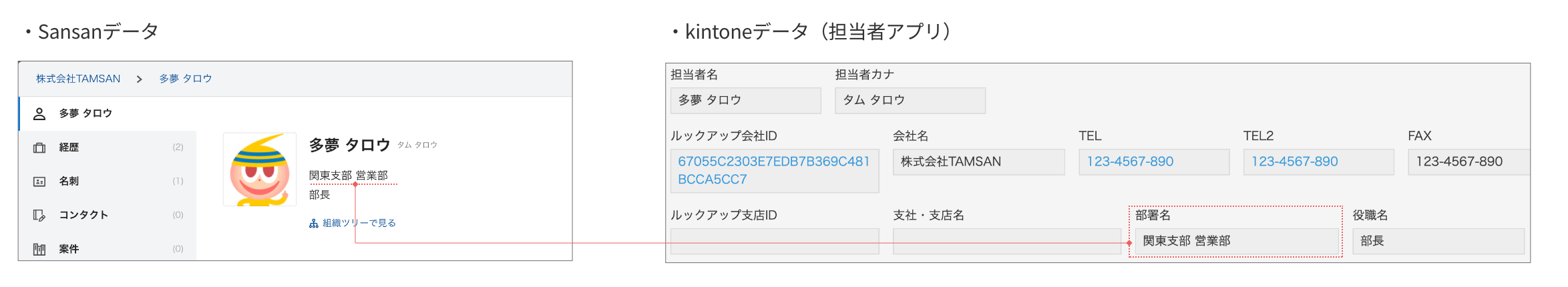 kintoneアプリの担当者情報と、Sansanの人物情報を紐付ける上で、キーとなる情報。