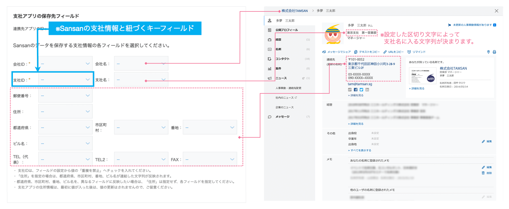 支社アプリ:kintoneフィールドと、Sansanデータとのマッピング